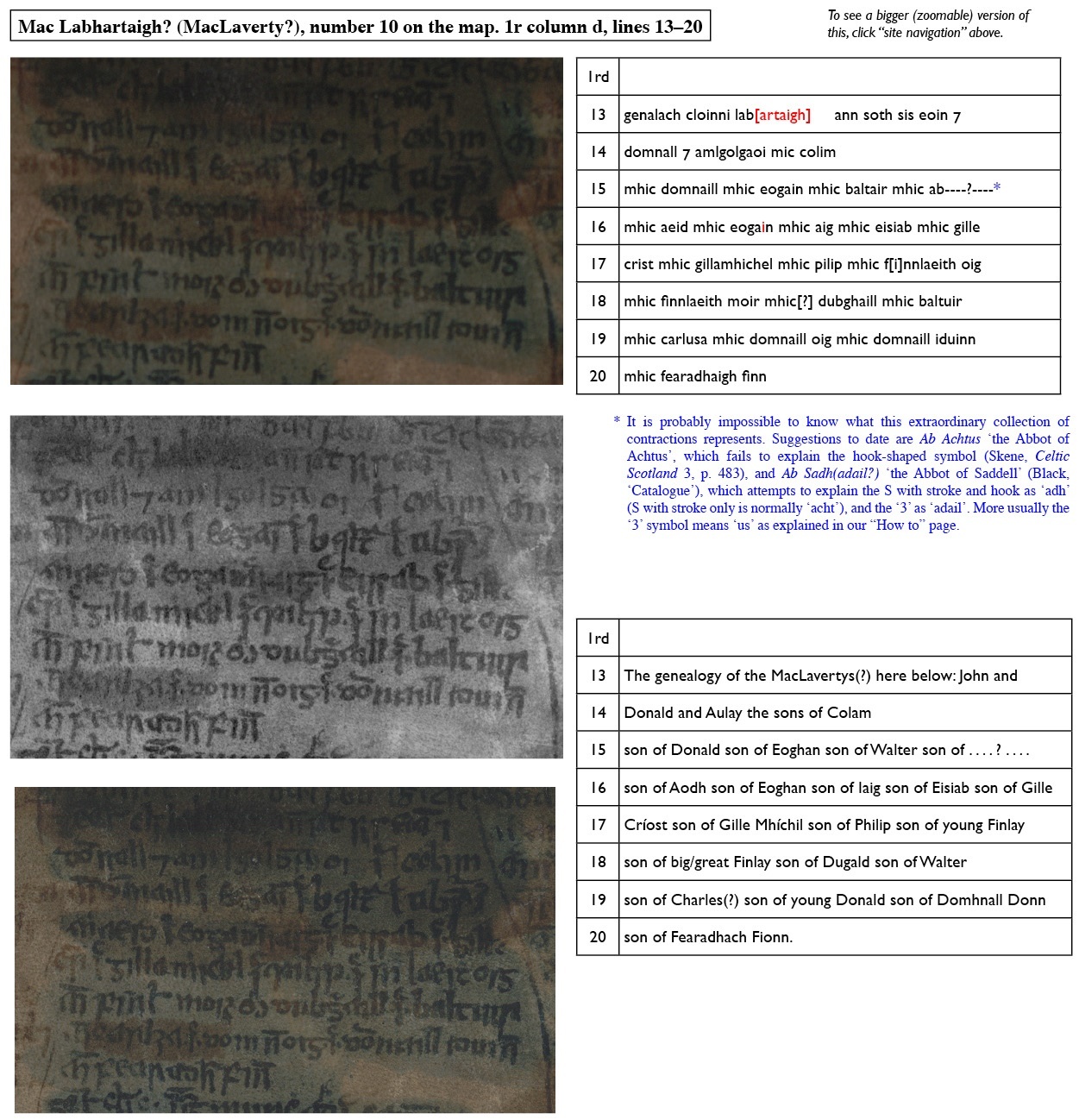 Is it possible that the MacLarens of Balquhidder and the MacLaurins of Appin are one and the same? It is understood that recent DNA results have confirmed the close relationship of MacLarens and MacLaurins with MacVicars from Appin. It appears that everything that has been written about the origin of the Clan MacLaren in Balquhidder postdates Skene and Logan. In Balquhidder, the first documentary evidence for a MacLaren presence was Malcolm Maklawryn, - tenant in the rentals for Invernenty in 1512 along with Macintyres. [10] It is, of course, quite possible that there were MacLarens in Balquhidder prior to Malcolm Maklawryn. Indeed, the fervent belief of the clan MacLaren that their ancestors had possessed lands in Balquhidder for hundreds of years prior to 1510 cannot be completely ignored. However, they are unable to produce any evidence for this while there is actual evidence supporting the origin of Clann Labhruinn in Argyll. Fionnlagh MacGregor was also recorded in 1510 as tenant of half of Easter and Wester Innerlochlane. So it appears that both MacLarens and MacGregors appear in the glen for the first time, probably moved there as a result of the Earl of Argyll's expanding control after 1475 over Balquhidder. Hilton McLaurin told me that he has been unable to find any older presence of MacLarens in Balquhidder or Strathearn. He says "I am confident that Malcum Maklawryn at Invernenty in 1512 is an early-to-arrive McLaren, the 1559 Glenorchy/V’Laurane Balquhidder Bond has Malcum's sons and his nephews from his nine brothers, Malcum's generation apparently having all passed away by the March 11,1559 date of the Bond. All the Balquhidder and Strathearn McLarens appear to descend from these ten brothers. After carefully reading "The MacLarens", by Margaret MacLaren, the earliest independently documented references I could find, were: 1. On page 50, the testament of Patrick Mor in 1544. This is the earliest recorded MacLaren will. Patrick is said by Hilton McLaurin to be a son of Malcum in Invernenty. 2. On page 46, from the Lord High Treasurer's Accounts for 1633, a translation from the Latin reads "And of xl pounds, the value of the forfeited possessions of Nichol McKinreauch McLaure, Nigel (Neil) Nicholsone McLaure and his sons, and also Duncan Paterson McLaure, put to the King's horn for the killing of the late Schir John McLaure, vicar of Balquhidder". The claimed attack in 1558 by the MacGregors on the MacLarens According to the Clan MacLaren, in 1558, the MacGregors attacked and murdered eighteen MacLaren families and took over their farms. [11] This claimed atrocity is inscribed on a granite memorial stone in Balquhidder kirkyard - paid for by Daniel MacLaurin of St John’s Wood, London, in 1868 which reads: . “IN MEMORIAM of the Clan Laurin anciently the Allodian inhabitants of Balquhidder and Strathearn the Chief of whom in the decrepitude of old age together with his aged and infirm adherents, their wives and children, the widows of the departed kindred, all were destroyed in the silent mid-night hour by fire and sword by the hands of a banditti of incendiarists from Glendochart. A.D. 1558”. Daniel MacLaurin in his self-published "History in Memoriam of the Clan Laurin" of 1865 wrote at length on this supposed event. MacLaurin's booklet then became a ‘primary source’ for "The MacLarens", published by Margaret MacLaren in 1976. MacLaurin had previously colluded with James Logan in claiming the ancient possession of Balquhidder by Clan MacLaren in "Costumes of the Clans", published in 1845. On page 17, MacLaurin, located the 1558 attack in Balquhidder and went on: "The manner in which they were cruelly dispossessed is related in ‘Pitcairn's 'Criminal Trials’, where it is said they were attacked in the silence of midnight by a band of the MacGregors who set fire to their thatched cottages, and gave no quarter. They took possession of the cattle and farms of their massacred victims." And on page 20 of the booklet: "... this last catastrophe cost the Clan Laurin the flower of their youth and manhood, and also the able-bodied or fighting men. Bereft of all protection the infirm, the aged, the women and children offered an unresisting prey to their base destroyers” …. ‘The Criminal Trials of Scotland’ by Robert Pitcairn, W.S., gives an account of the cruel murder and burning of eighteen householders of the Clan Lauren, their wives and bairns, committed forty-six years since or thereby." …. "And thus miserably perished, at the least, one hundred human beings, without even time to supplicate their creator to receive their souls." This is a pretty dreadful crime to accuse the MacGregors of - on a par with a massacre in Srebrenica. But did it happen, as described? Or, at all? Was it just a figment of MacLaurin's over-active imagination? One would expect that such dreadful deeds would be corroborated elsewhere, or at least mentioned in the lengthy lists of the outrages actually recorded in charges against MacGregors during the late 16th and the 17th century. But they are not! So, what did Pitcairn actually publish about this in ‘Criminal Trials’?: The only reference is a single sentence on Page 440 of Volume 2: ‘Johnne McCoull Cheire to be clene, innocent and acquit’ .. ‘ffor airt and pairt of the crewall Murthour and Burning of auchtene houshalderis of the Clanlawren, their wyves and bairnis ; committit fourtie sax yeir syne or thairby [12] Johnne McCoull Cheire was acquitted! The only "not guilty" verdict in all the MacGregor trials of 1603 and 1604. No one else was charged with this. Pitcairn does not mention Balquhidder; the murder of a hundred of the clan “in the flower of their youth”; “in the silence of midnight”; “no quarter”; or that the MacGregors “took possession of the farms of their victims”. It is scandalous that MacLaurin could claim the murder of 100 men, women and children, on such flimsy evidence. Margaret MacLaren’s
